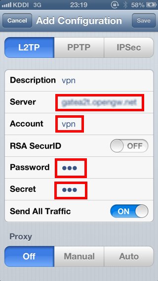 所有输完后,点击 "Save" 按钮并保存 VPN 连接设置。